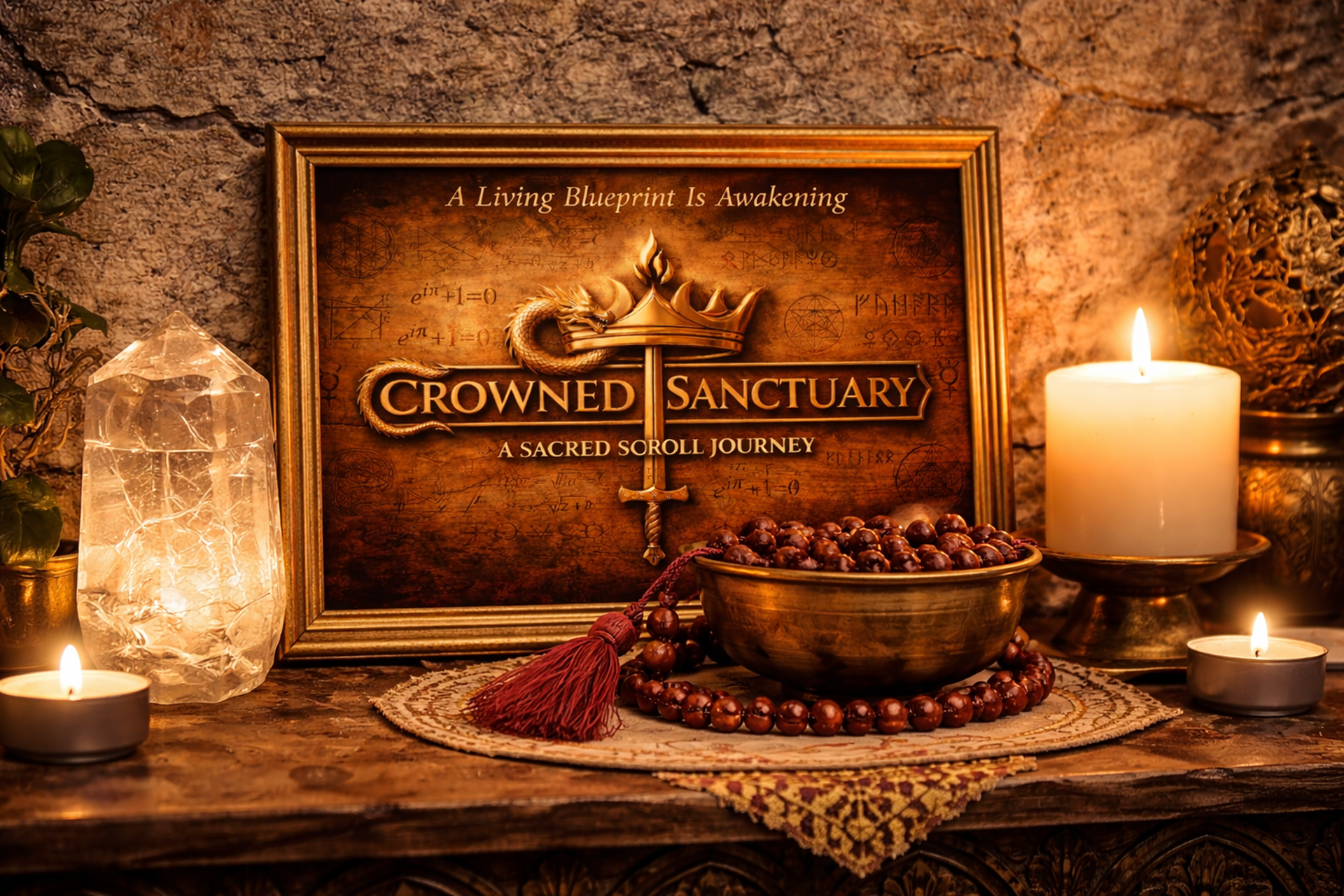Framed in rich, timeworn wood and layered with sacred symbolism, it carries the feeling of something discovered rather than made. The crowned sword, the coiled dragon, the etched equations and glyphs - each element speaks to a deeper order, a quiet knowing beneath the surface.